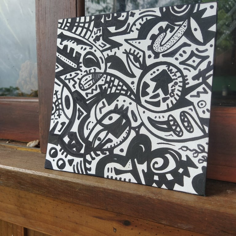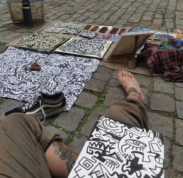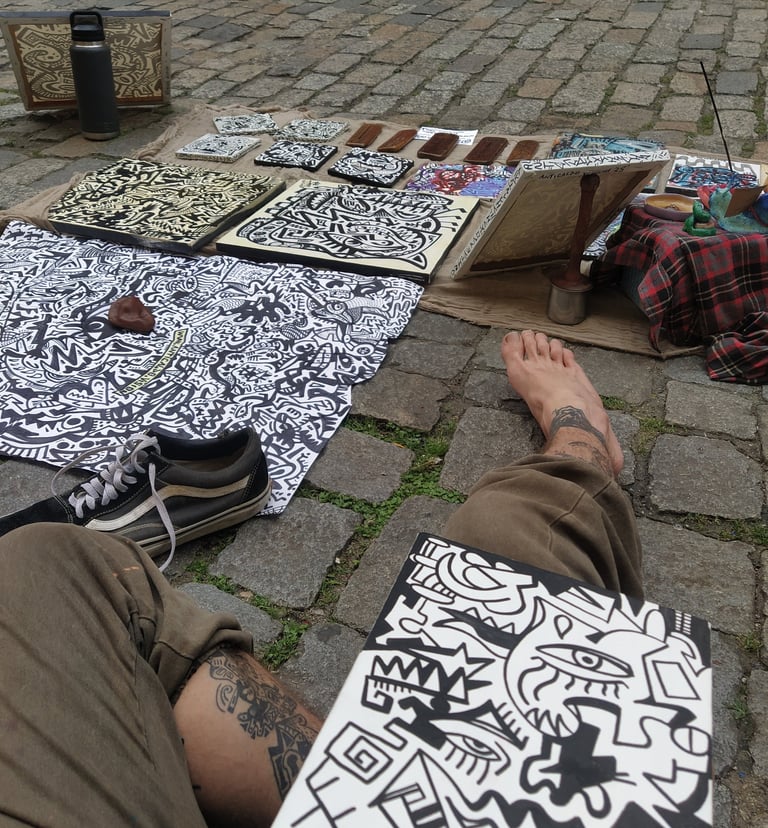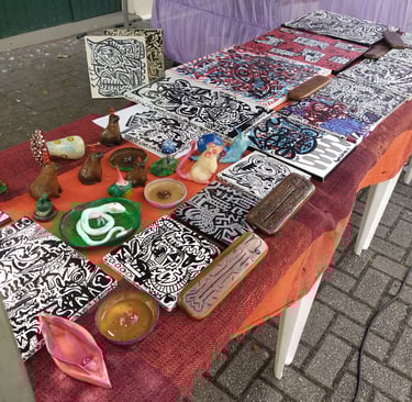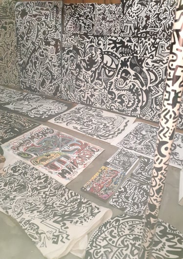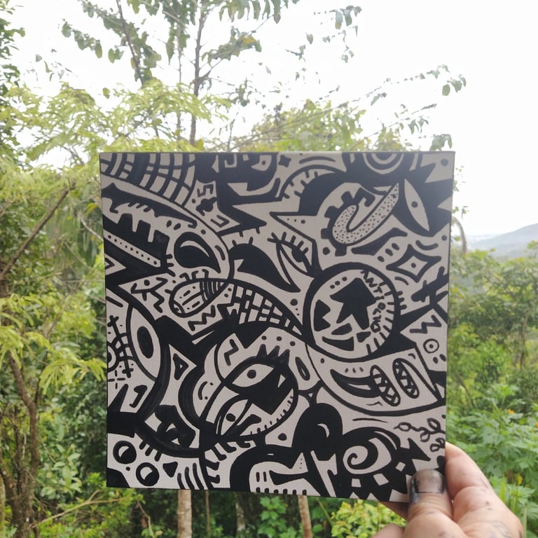 Esta é a primeira pintura freestyle com transeuntes. 16 fora o número de participantes da obra, onde, esta é uma das minhas composições favoritas. Fazer arte é tomar decisões! O passante fica no papel do artista, se defronta com uma tomada de decisão prática, onde, coloca um pouco de sua alma na obra. Sinto que o "medo de estragar" é uma constante que nos assombra muitas vezes. Na arte não há erro, não há culpa e muito menos culpado. A grande mensagem da vida , talvez, seja ser livre para optar, até em optar por não pintar... e está tudo bem e sempre estará. Talvez a obra nunca tenha um fim de fato, pode ser tudo um grande 'processo processual' que joga seres distintos que juntos fazem a causa proceder um resultado maravilhoso.
